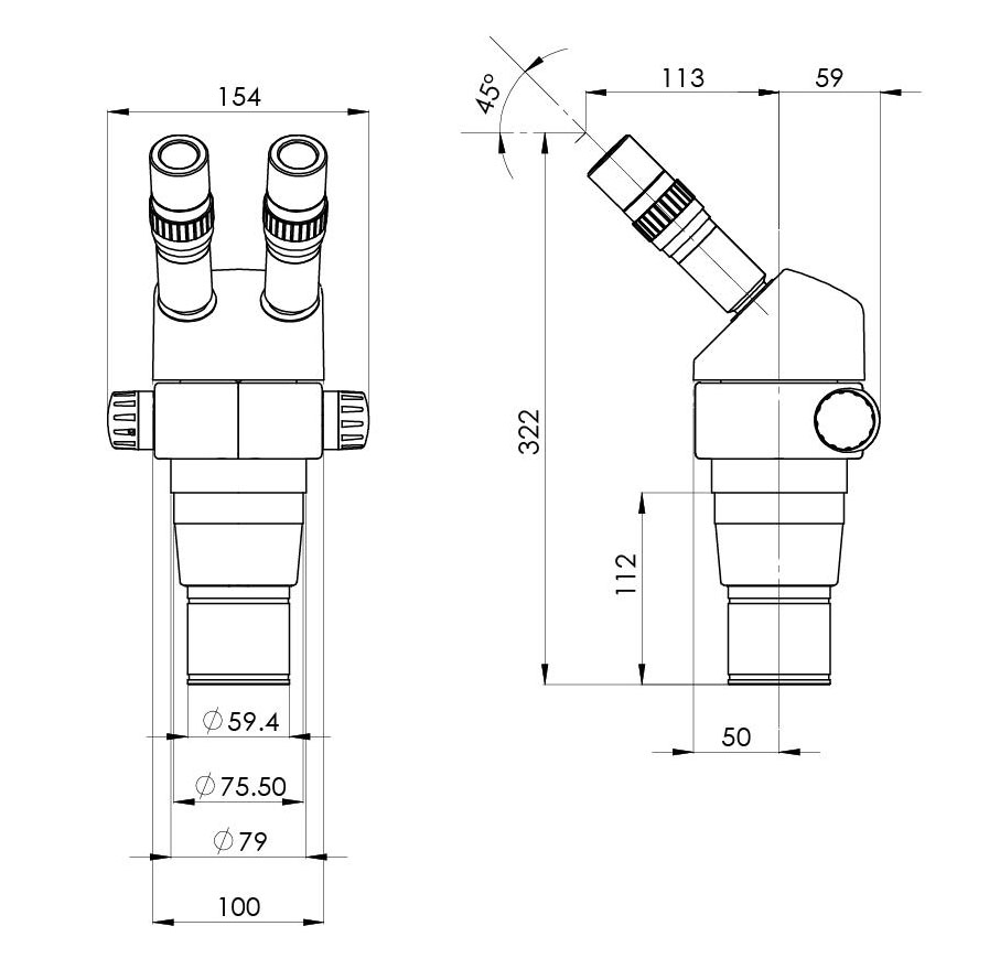 瞳距調節范圍(用10X 目鏡)